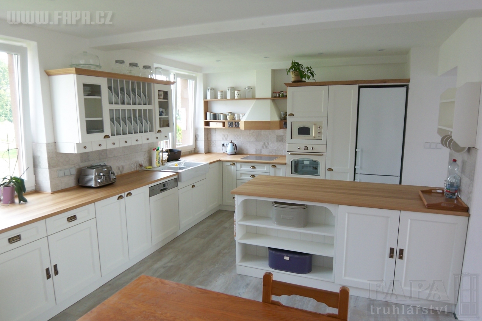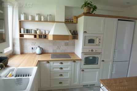 Kuchyňská linka zařízená v Provence stylu působí více tradičně, poskytuje dostatek úložných prostor. Kouzlo se ukrývá v kredencích, otevřených skříňkách.  Kuchyňská linka zařízená v Provence stylu působí více tradičně, poskytuje dostatek úložných prostor. Kouzlo se ukrývá v kredencích, otevřených skříňkách.  Kuchyňská linka zařízená v Provence stylu působí více tradičně, poskytuje dostatek úložných prostor. Kouzlo se ukrývá v kredencích, otevřených skříňkách.  Kuchyňská linka zařízená v Provence stylu působí více tradičně, poskytuje dostatek úložných prostor. Kouzlo se ukrývá v kredencích, otevřených skříňkách.