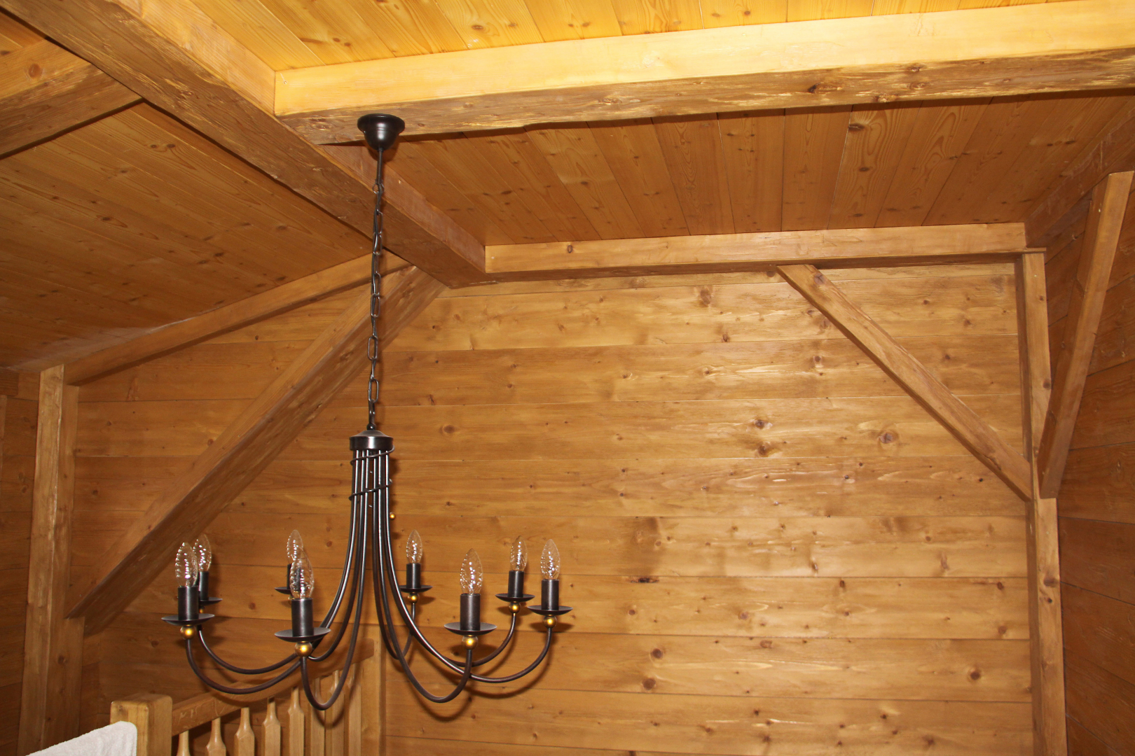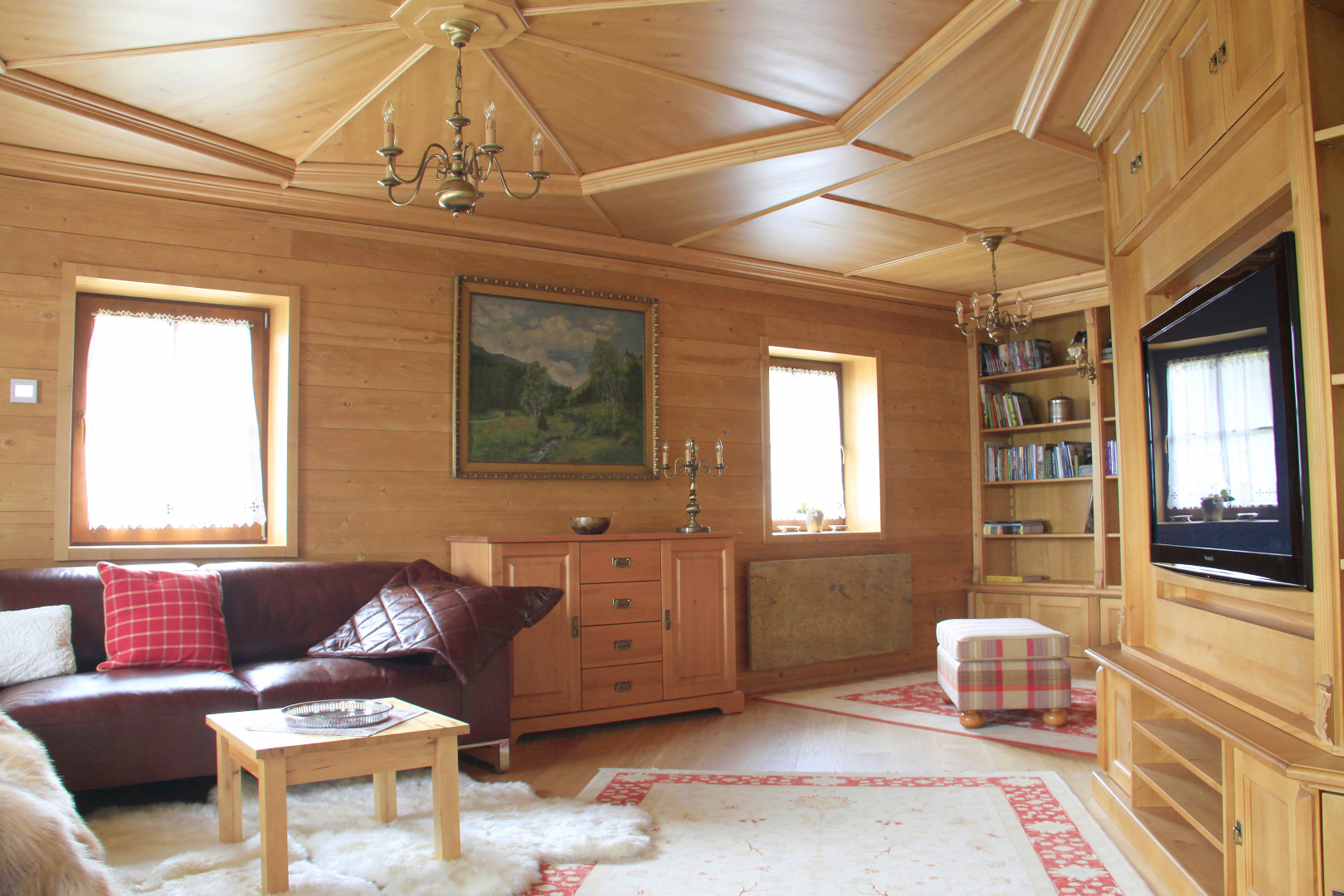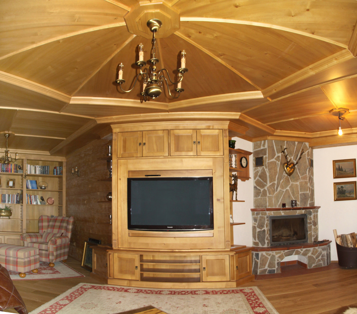 Interiér chalupy na klíč - Vybavení interiéru objektu na horách, obklady stěn ze sekaných palubek, vykládaný strop, nábytek na zakázku